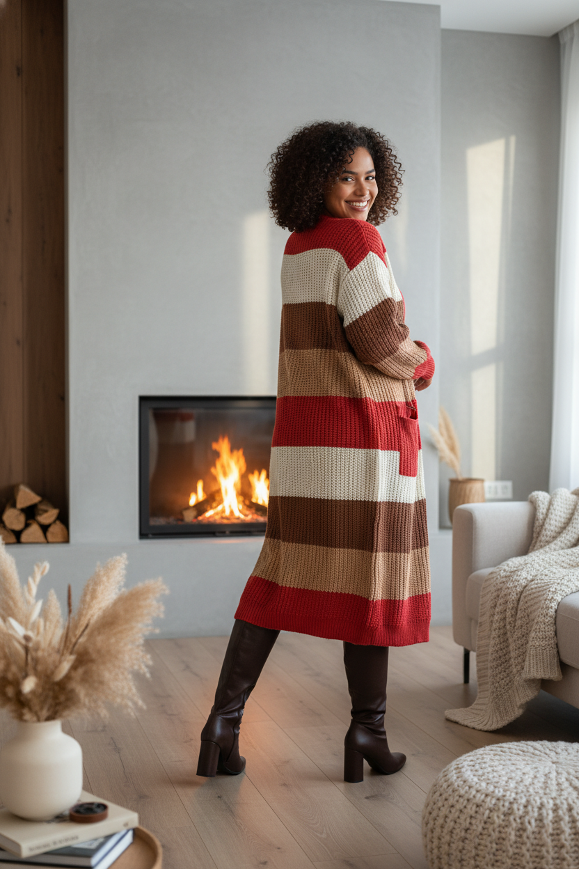 Color Block Open Front Longline Cardigan